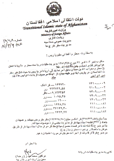 پاسخ وزارت امور خارجه به افشاگری کابل پرس 722619 دالر اختلاس در وزارت امور خارجه همراه با سندی از اين وزارتخانه | ||||||||