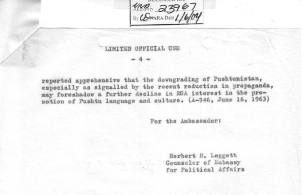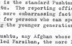 2. این بحث معیاری پشتونها درباره موقعیت پشتو میباشد. کارمند گزارشگراز ذکر حقایق شرم آور بیشترخودداری کرد که: درفامیل شاهی تعداد اشخاص محدودی وجوددارند که پشتو میدانند، بخصوص در بین نسل جوانترآنها.