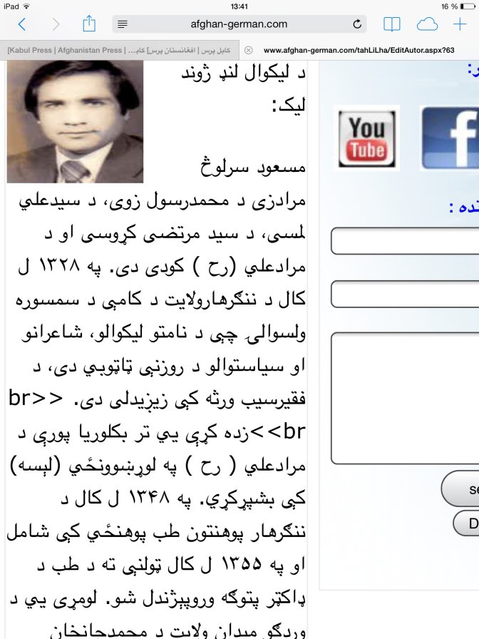 اين بندهء حقيرفقير سراپا تقصير با نوشته هاي غير مودبانه؛ نفرت بار ونفاق افگنانهء جناب سرلوچ مرادزي از دير زمان بدينسو آشنا بودم ودرين رابطه درسايت كابل پرس چند مقاله اي را در نقد نظريات جناب سرلوچ مرادزي نگاشته ام كه جناب مرادزي تاكنون هرگز قادر به رد آنها نشده اند. اما چيزيكه درين اواخر توجه مرا در مورد ايشان جلب نمود داشتن دو هويت متضاد در صفحهء فيس بوك شان ودر صفحهء افغان- جرمن انلاين ميباشد.