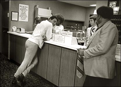 در این عکس که به تاریخ آگوست 1974 در پنسیلوانیا گرفته شده است و او در حالیکه چندان سر حال نیست بر روی یک کنده درخت نشده است.