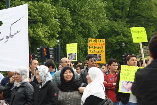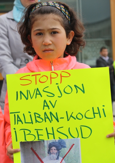 اعتراض صدها افغانستانی مقیم نروژ به حمله ی مسلحانه ی کوچی با بیرق آدمکشان طالب