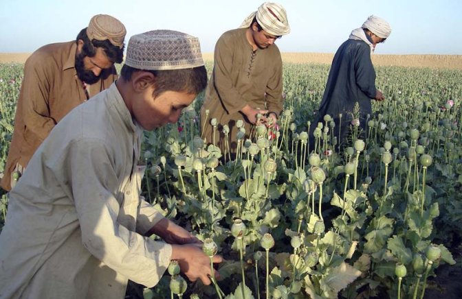 افغانستان بزرگترین تولید کننده ی مواد مخدر جهان است که سالانه جان میلیون ها تن را تهدید می کند. تولید کنندگان و قاچاقچیان مواد مخدر با حمایت کامل حکومت مافیایی کرزی و نیز بخش هایی از نیروهای بین المللی سالانه به میلیاردها دالر دست پیدا می کنند و اما کشاورزان در افغانستان، آنانیکه مواد مورد نیاز را تولید می کنند در فقر بسر می برند.
