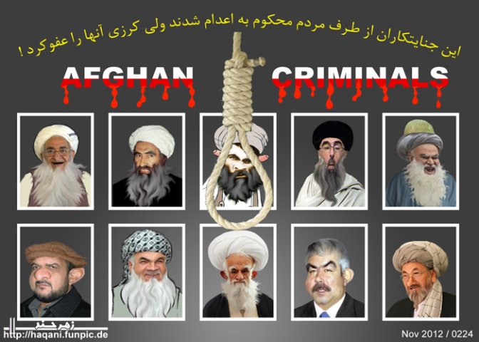 این جـــــنایتـــــکاران از طـــــرف مـــــردم محکـــــوم به اعـــــدام شدند ولی کـــــرزی آنهـــــا را عفـــــو کرده بجـــــای شان چـــــند مـــــرغ دزد و ســـــگ باز را بدار آویخـــــت