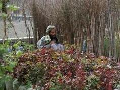 يو بزګر د کابل په پل ارتل سيمه کی نيالګي خرڅوی.