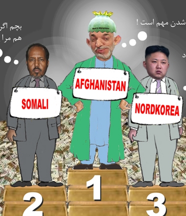 از فیـض کرامات حامد کـرزی افغـانسـتان در جهـان حایز مقـام اول شــد امـا در مبارزه با فسـاد اداری و چـور و چـپاول داریی هــای عـامـه !