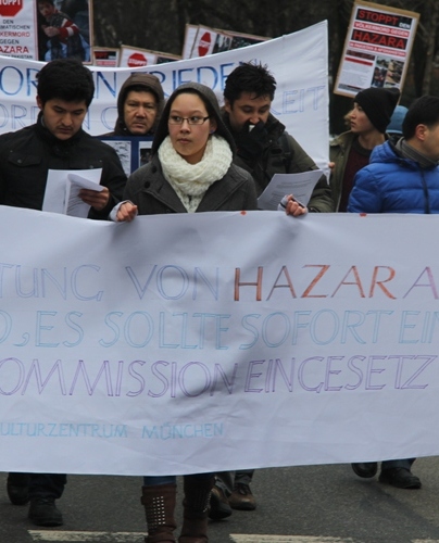 تظاهرات کنندگان در طول مسافت راه که توسط نیروهای امنیتی وپلیس محافظت میشد با سر دادن شعار های مختلف به زبانهای آلمانی وانگلیسی چون: کشتار های هدفمندانه هزاره هارا در پاکستان وافغانستان متوقف کنید وکشتار های سیستیماتیک هزاره کویته پاکستان را متوقف کنید ،وخواندن چندین بیانیه ومقاله در ارتباط با حوادث چند سال اخیر کویته پاکستان سرانجام ساعت 11,30 به ساختمان حکومتی آیالات بایرن آلمان رسیدند. ودر آنجا خواست های شان را با قرائت بیانیه،مقاله،سخنرانی وسردادن شعار ادامه دادند تا اینکه بعد از مدتی کوتاهی نماینده رسمی رئیس وزرای حکومت آیالتی بایرن آقای دکتر فیشر در جمع تظاهرات کنندگان حاضر شد وبادر دست گرفتن میکرفون گفت با عرض معذورت که رئیس وزرا با خاطر شرکت در جلسه استعفای رهبر کاتولیک جهان بیندکت 16 در واتیکان ایتالیا رفته وتشریف ندارد تا شخصا در جمع شما حاضر میشد وضمن ابراز تائسف نسبت به حوادث کویته پاکستان قول داد که خواسته های ما را که در یک نامه سرگشاده عنوان رئیس وزرائ بایرن آقای هورست زیهوفه وصدر اعظم آلمان خانم آنگیلا مرکل ووزیر خارجه آقای گیدو ویستولی بود عملی نمایند وراجع به محتوای آن که عبارت از جلوی گیری از کشتار سیستیماتیک مردم هزاره در کویته پاکستان وافغانستان وفشار آوردن به حکومت پاکستان تا علیه گروه های تروریستی اقدام جدی کند واقلیت های مردمی را بیشتر ازین قربانی منافع سیاسی خود نکند تحقیق وبررسی نمایند وبعد از مذاکره نماینده های تظاهرات کننده ها با آقای دکتر فیشر وتسلیم نامه ها به ایشان ساعت 12 ظهر تظاهرات خاتمه یافت ومردم هم هرکدام بطرف خانه هایشان متفرق شدند.