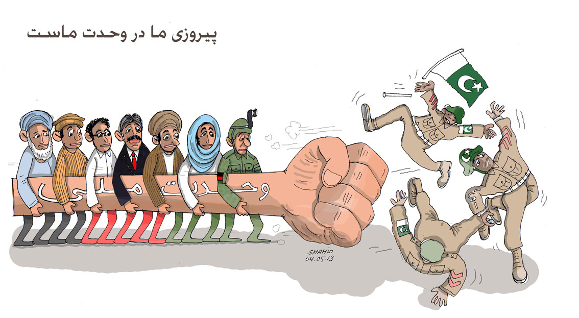 اردوی ملی را از درون برادان شما خراب میکنند. ارگ نشینان خواب پشتونستان را در سر دارند. از امریکا گرفته تا پاکستان و ایران به ارگ نشینانتان بوجی بوجی پیسه روان میکنند. شما بگو، ایا این طور سیاست شما نتیجه اش وحدت ملی است؟