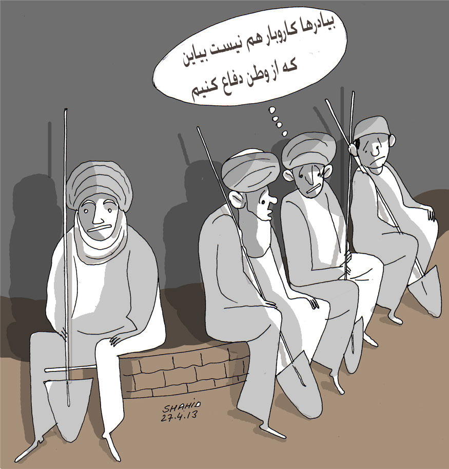 اما متاسفانه اولاد کرزی بی غیرت و خرم گاو و احدی ایزک و اشرف غنی ایزک و خلیلی پچق و مارشال بینی کچالو و دیگر دزدان در دفاع از وطن نیمیرند. بلکه اولاد غریب کار است که مجبور است از بدی روزگار یا پیش طالبان سبک مغز بدوی جنوبی وحشی برود یا در اردوی مولی بدست همقطارانشان از کمینگاه یا بدست دزدان پشتو زبان پاکستانی و یا بدست پاکستانی دال خور کشته شود.