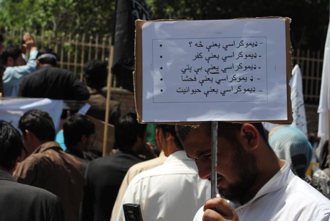 • تا زمانيكه مولوى و ملاء در دولت و بارلمان قدرت دارند همين حالت ادامه دارد، براى رسيدن به دموكراسى بايد ( ٥٠٠ ) سال صبر نمايم كه دين از سياست جدا شود، بعداً إمكان دموكراسى است.