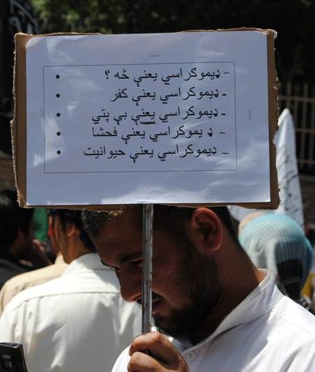 Kabul, Wednesday, May 22, 2013: A group of Mullah Omar’s supporters and students of faculty of Islamic studies of Kabul university have demonstrated against women rights and approval of law on the Elimination of Violence Against Women (EVAW). Demonstrators were carrying Taliban flag chanting anti-democracy and women rights slogans. This demonstration was held in Kabul while rights organizations such as Hazara Women International have asked authorities to properly insure the safety and the rights of women in Afghanistan.