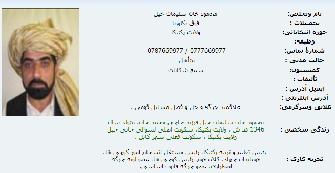 در سند سفارت آمریکا نام محمود خان سلیمان خیل رئیس مستقل انسجام امور کوچی ها عبدالوهاب سلیمان خیل آمده است.