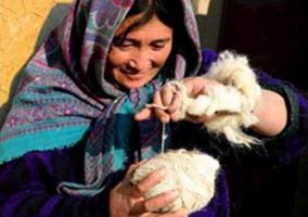 A woman spinning thread from sheep wool in Dashte Barche area of Kabul city.