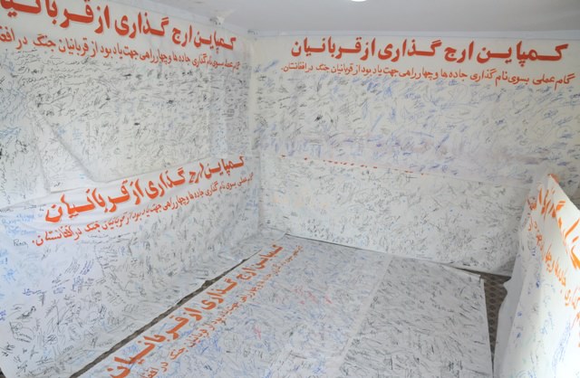 کابل پرس?: بتازگی سازمان حقوق بشر و دموكراسي افغانستان کمپینی را راه اندازی کرده که در آن خواسته شده نام جاده ها و چهارراهی ها به نام قربانیان جنگ ها نامگذاری شود. برگزار کنندگان این کمپین در چند روز نخست راه اندازی آن توانسته اند امضای بیش از ده هزار تن از شهروندان افغانستان را بدست آورند.