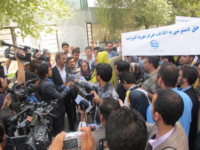 حدود دو صد خبرنگار از رسانه های مختلف کشور در یک گرد همایی مسالمت آمیز در مقابل شورای ملی کشور از وکلای پارلمان خواستند تا حکومت افغانستان را مجبور نماید که قانون حق دسترسی به اطلاعات را که از دو سال به این سو در ادارات دولتی سرگردان است، به پارلمان ارسال و توسط وکلای پارلمان به زودترین فرصت تصویب گردد.