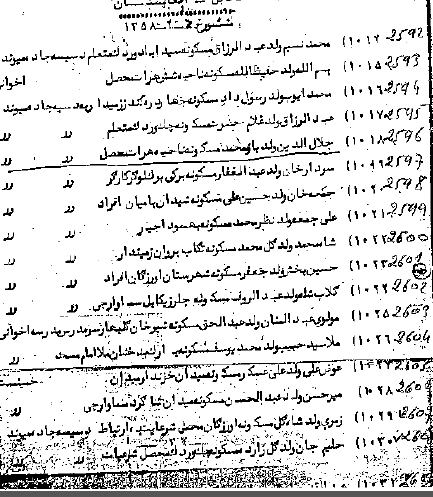 حد اقل اسم دوتا از كشته شده ها در طول ماه دوم سال ٥٨ در ولايت بلخ و أطراف ان وجود ندا رد در حاليكه هر شب در شهر مزار كشتار جريان داشت. نتيجه بر اين است كه لست ناقص ميباشد