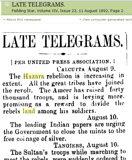 زمانی که چنگیز خان در افغانستان پیروز شد، مردمان خود را در منطقه جابجا کرد و زمانی که عبدالرحمان خان پیروز شد، مردمان خود را جابجا کرد.