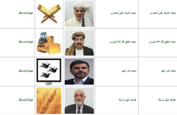 نام و نشان نامزدهای انتخابات ریاست جمهوری سال 1393 افغانستان