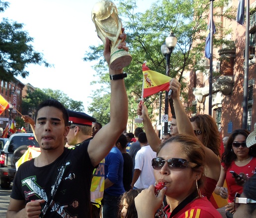 هر چند به فوتبال علاقه ی شدید ندارم اما شادمانی و پای کوبی طرفداران تیم اسپانیا که اکثرا اسپانیایی ها بودند مرا واداشت تا دقایقی را از موتر پیاده شوم و با لینز دوربین عکاسی شریک شادیهای شان باشم و این هم تصاویر از این جشن و پاکوبی .