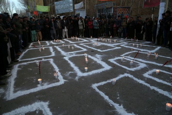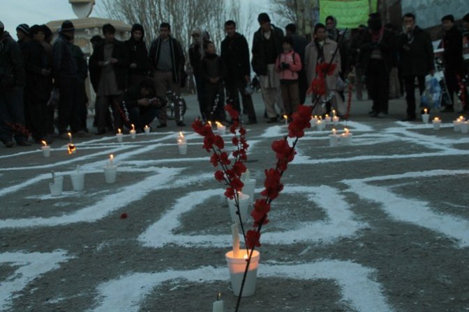 در ادامه، همه اشتراک کنندگان با هم به طرف چوک صلح رفتند و بالای مقبره های نمادین شمع افروختن و شاخه گلی را بنا به رسم احترام تقدیم ارواح شهدا اخیر کویته نمودند و مراسم با خواندن فاتحه ی به پایان رسید.