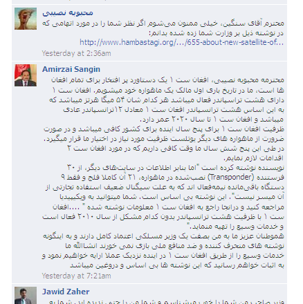 روی همین ملحوظات بود که من در سایت افغان پیپر نظر خود را در باره این ماهواره نوشتم و خواستار تحقیقات کمیسیون مخابرات ولسی جرگه در زمینه شدم.