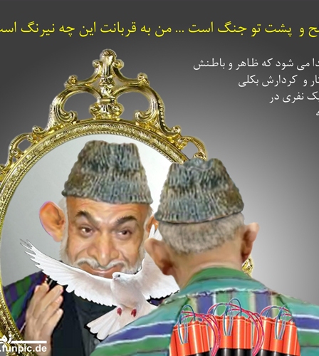 کمتر حکمرانی در تاریخ و کمتر سیاستمداری در جهان پیدا می شود که خود را به آتش بیاندازد تا کشورش از خطر سوختن نجات دهد ولی کرزی یگانه سیاستمداریست که کشورش را به آتش می کشد تا خود در گرمی و حرارت آن برای خود و فامیلش نان مراد بپزد.