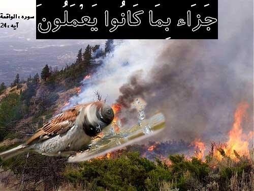جواب ئې ورکړ: دلته نژدې د اوبو چينه ده، پخپلو وزرو او مشوکه کي د اور وژني لپاره اوبه اخلم.