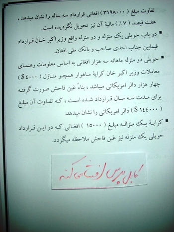 اشاره: آنچه در ادامه می آيد، چند نمونه سوء استفاده و اختلاس در بانک ملی افغان است که در يک مورد آن وزير محترم ماليه آقای انورالحق احدی دست دارند. طبق سند رياست مستتقل مبارزه با فساد و ارتشای اداری، 144 هزار دالر آمريکايی توسط آقای احدی به نفع شخصی استفاده شده است.