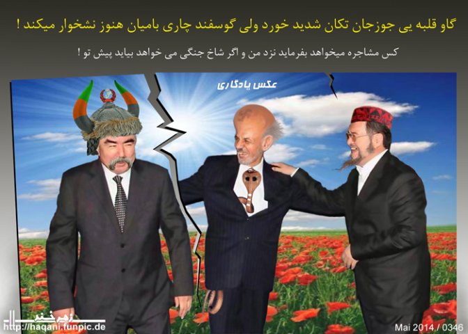 بیچاره ملا اشرف غنی باز هم پائین و بالا دنبال چارپای دیگری سرگردان است و قرار شایعات در ولایت پنجشیر حیوان خوبی به چشمش خورده که اگر برای قربانی مناسب باشد به خریداری آن اقدام خواهد کرد.