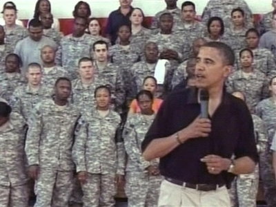 اوباما ميان سربازان آمريکايی/ او بر ضرورت مبارزه با القاعده و طالبان تاکيد می کند