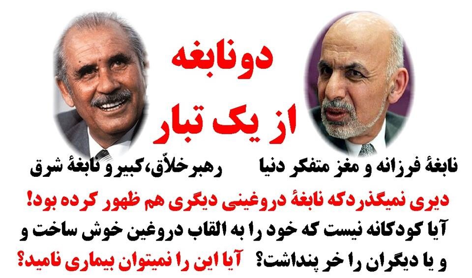 ولی در رابطه به دو شخصیتی که آقای غنی به آن اشاره کرده است، فکر کنم در میان اکثریت مردم افغانستان دهشت افگن، مجرم، قاتل... شناخته شده اند. ملا عمر شخصیکه زیر رهبری اش ده ها مکاتب و مدارس در افغانستان به آتش کشیده میشود، سر ده ها نوجوان (که سن برخی شان از ١٣ و ١٤ عبور نمیکند) به بهانه ی تهمتِ جاسوسی به امریکا بریده میشود، به همینطور سر ده ها تن از سربازان کشور به بهانه های وحشی ای بریده میشود، و هزاران تن از شهروندان کشور که توسط خود مرداری ها، حملات انتحاری طالبان (زیر رهبری همین امیرالمومنین) درین ١٣ سال ازبین رفته اند را، این متفکر دوم جهان، شخصیت معظم میداند.