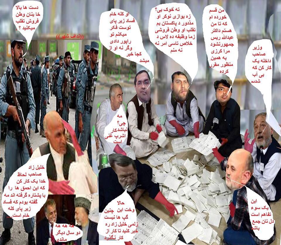 کمیسیون های انتخاباتی، وظیفه داشته بوده، تا به هر ترتیب، که بتوانند آقای اشرف غنی احمد زی را پیروز بسازند. بناءٌ انتخابات، آرای مردم، این هاهمه پرده های نمایشی ودروغینی بوده، که برای فریب اذهان مردم به راه انداخته شده بوده، ورنه برندهء انتخابات در دور اول معلوم بود. پس مسوول و جواب گوی خون اضافه تر از ۶۰ نفر فرزندان نظامی وملکی این سر زمین، که در روز دور دوم انتخابات ۲۴ جوزا جان های شیرین خود را از دست دادند جمع آن همه مصارف گزاف، که در دور دوم انتخابات به مصرف رسید، کمیسیون هایی انتخاباتی می باشند.