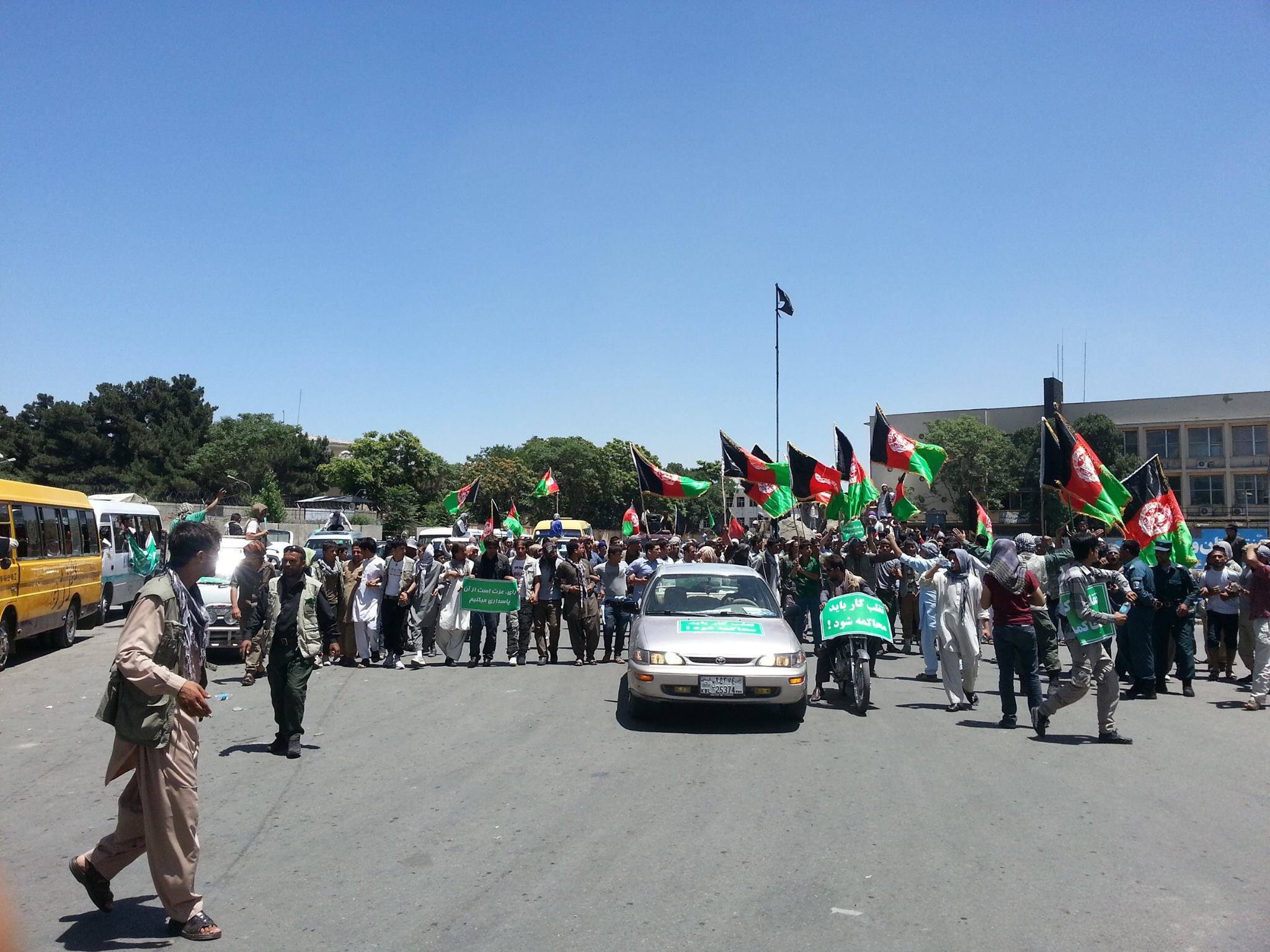 اقای اشرفغنی و یارانش کاری را با عبدالله و یارانش میکنند که انها در زمانش با دیگران کرده بودند.اقای اشرفغنی و یارانش از طریق تقلب و دغلی هر طور شده میخواهند به قدرت برسند. اقای عبدالله و یاران و طرفدارانش جگرخون هستند و میدانند که در حقشان تقلب شده و فریاد میزنند. این حقشان هست و باید برای گرفتن حقشان دست به تظاهرات بزنند و نتیجه انتخابات را قبول نکنند.
