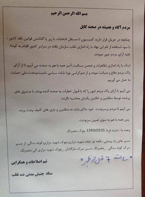ولايت قهرمان فارياب نيز در به صف جنبش ضد تقلب پيوست