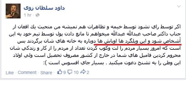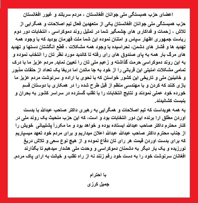 امروز جنبش مدني ضد تقلب را تيم داكتر عبدالله رهبري ميكند، امروز نافرماني مدني را اعضاي ستاد انتخاباتي داكتر عبدالله سازمان داده است.