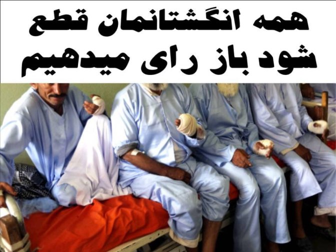 به انگشت هاي بريده شدهء اين بيگناهان بنگريد كه براي حاكميت مردم سالاري وحامعهء مدني از طرف طالبان انگشت هاي شان بريده شد