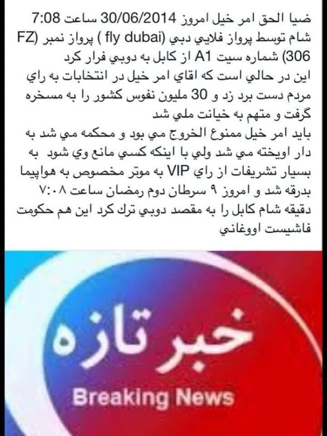 مردم افغانستان دیگر انتظار نظام سیاسی 300 ساله تقلبی را ندارند که به مکرو حیله و نیرنگ بر این ملت حکومت کنند. انتخابات این بار به وضوح برای افغانستان تفهیم کرد که این ملت همواره در مکرو حیله ای فروخته شدگان انگلیس، حمایت سعودی و تربیه شده ای پاکستان با حمایت امریکا قرار می گیرد. دموکراسی که هنوز در افغانستان پا باز نکرده بود پا های آن را معیوب ساخت. تقلب گسترده ای انتخاباتی دیگر متفکر جهان را به متفکر تقلب که با مکرو حیله زبانی دربرابر مردم افغانستان می خواست میراث حکومت چند صد ساله را پابرجا و حراست نماید معرفی کرد. مردم افغانستان نخواهد پذیرفت که متقلبین و حکومت سنتی قومی با گرایشات انگلیسی بر این ملت حکومت کند. صبر وتحمل این ملت بی چاره در برابر ظلم و استبداد به انتها رسیده است. حرکت های مدنی مردم دیگر دیوار های سنتی ارگ ریاست جمهوری فرو می پاشاند. این ارگ نباید در انحصار یک قوم باشد. بلکه زعامت ملت افغانستان باشد.