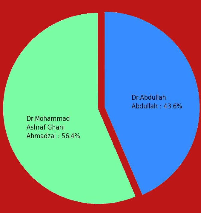 Ashraf Ghani won lost election less than 3% of votes. How he could jump suddenly to 56.4% ? It is clear that Ashraf Ghani Ahmad-Zaaye Amrikaaye with help of Hamid Karzai Popal-Zaaye and support of America and England did falsification. This election is an insult for oppressed Khorasan Country people.(aughan=poshto-stan)