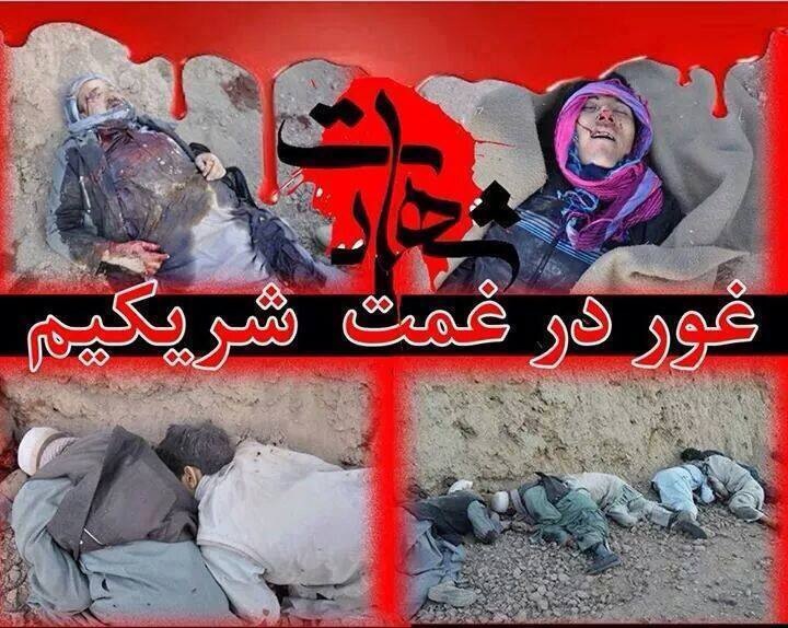 • این تصاویر دلخراش هموطنان بیگناه ما که به جرم هزاره بودن به قتل رسیدن را به سرور دانش, دوستم و ضیامسعود و دیگر احمق های هرازهء تاجک و ازبک که طرفداری و خایه مالی فاشسیت خر احمدزی را میکندد نشان بدهید.