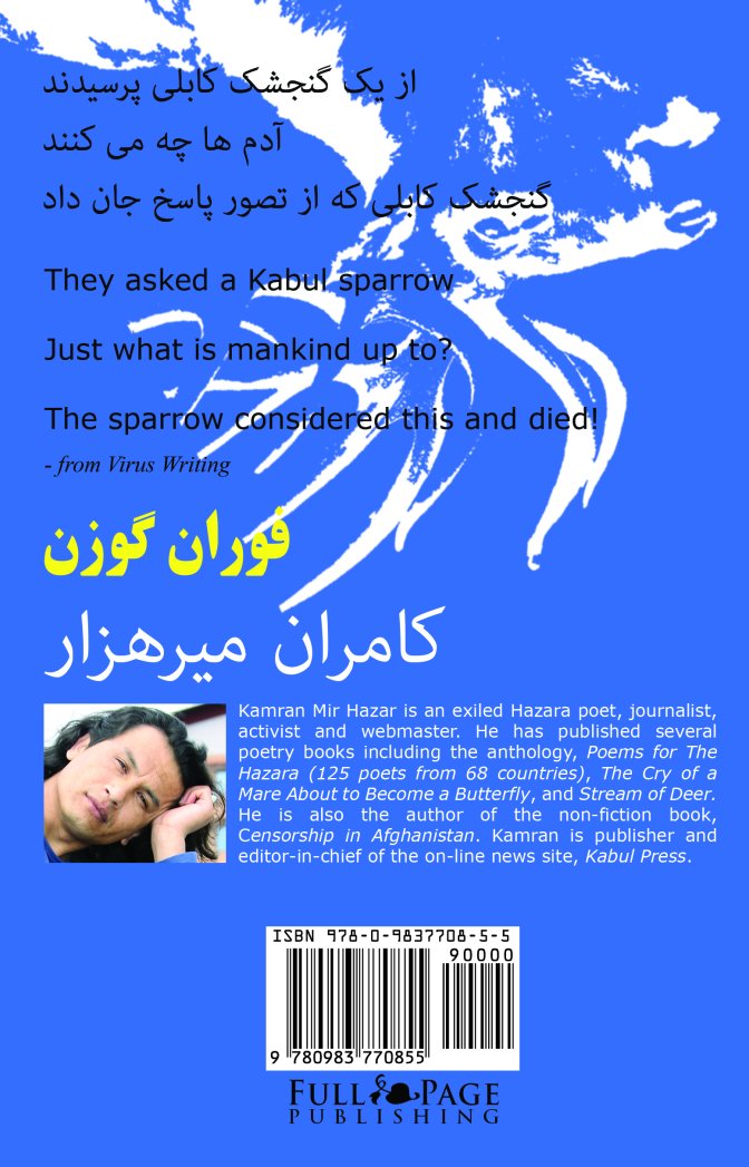 کابل پرس?: دفتر تازه ای از شعرهای کامران میرهزار شاعر، نویسنده و روزنامه نگار هزاره با عنوان STREAM OF DEER منتشر شد. این کتاب با شماره استاندارد بین المللی 9780983770855 در ماه جولای سال 2014 میلادی در اختیار علاقمندان ادبیات معاصر جهان قرار گرفت. مترجمان این کتاب خانم Marta Núñez Pouzols شاعر و استاد ادبیات انگلیسی و اسپانیایی و خانم Nushin Arbabzadah روزنامه نگار و پژوهشگر می باشند.