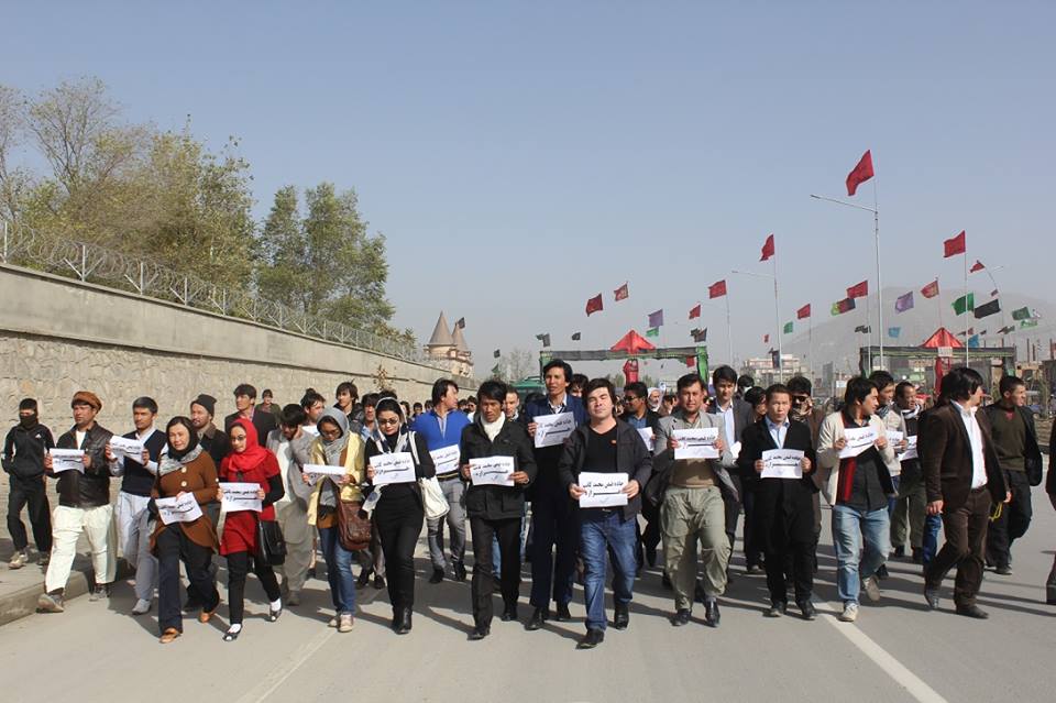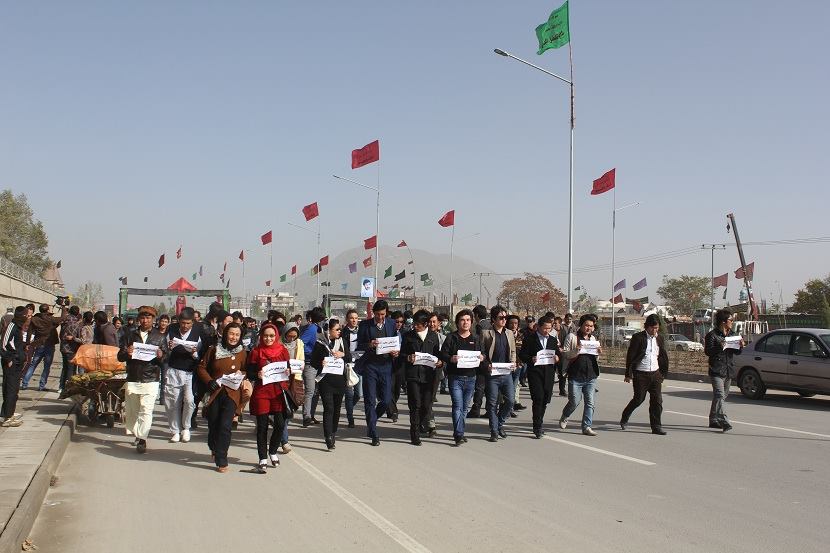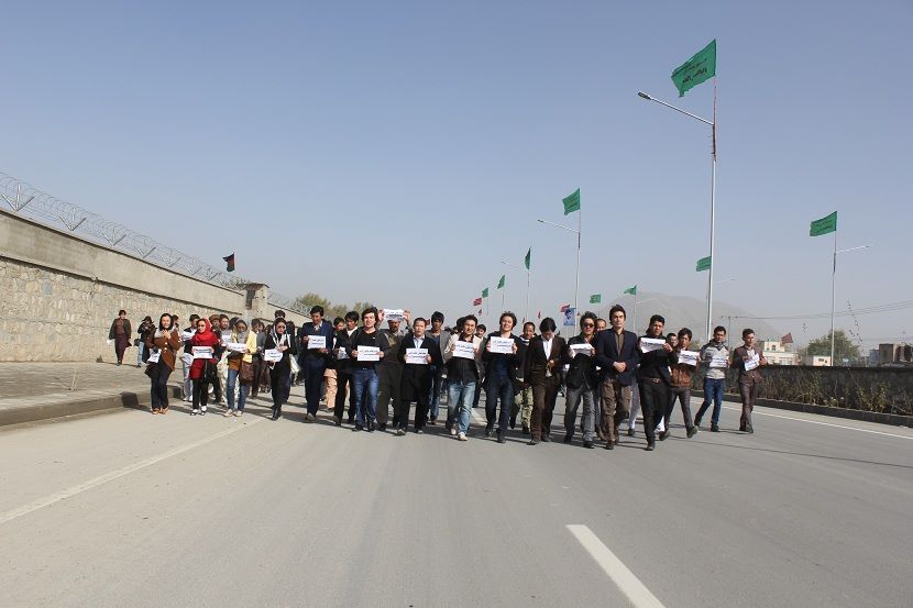 راه پیمایی در جاده فیض محمد کاتب هزاره - کابل پرس