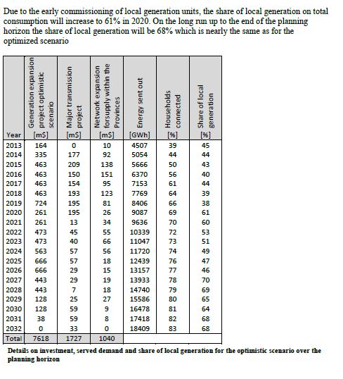 شرکت آلمانی فشنر قرار بود طرح ۲۰ سالۀ برق افغانستان را مطالعه و تدوین کرد؛ طرحی که از سال ۲۰۱۲ تا ۲۰۳۲ میلادی را در‌بر می‌گیرد. این گزارش در ابتدای ‌سال پا‌ر (حمل ۱۳۹۲) آماده و به دولت افغانستان داده شد. بر مبنای این گزارش، نیاز افغانستان به برق در سال ۲۰۳۲ میلادی به ۱۸۵۰۰ گیگاوات در ساعت افزایش خواهد یافت. به این ترتیب، باید ۳۵۰۰ میگاوات توان/طاقت در خطوط برق افغانستان وارد شود. شرکت فشنر در ماسترپلانی که برای برق افغانستان تدوین کرده است، با در نظر گرفتن همۀ منابع تولید و خرید برق و همچنین پیش‌بینی نیاز به برق در ۲۰ سال آینده در افغانستان‌، اقتصادی‌ترین راه‌کار‌های ممکن برای تهیه برق افغانستان را مشخص کرده است. بر مبنای این پلان ، در بهترین حالت افغانستان تا سال ۲۰۳۲ تنها قادر به تولید ۶۸ درصد از برق مورد نیازش خواهد بود.