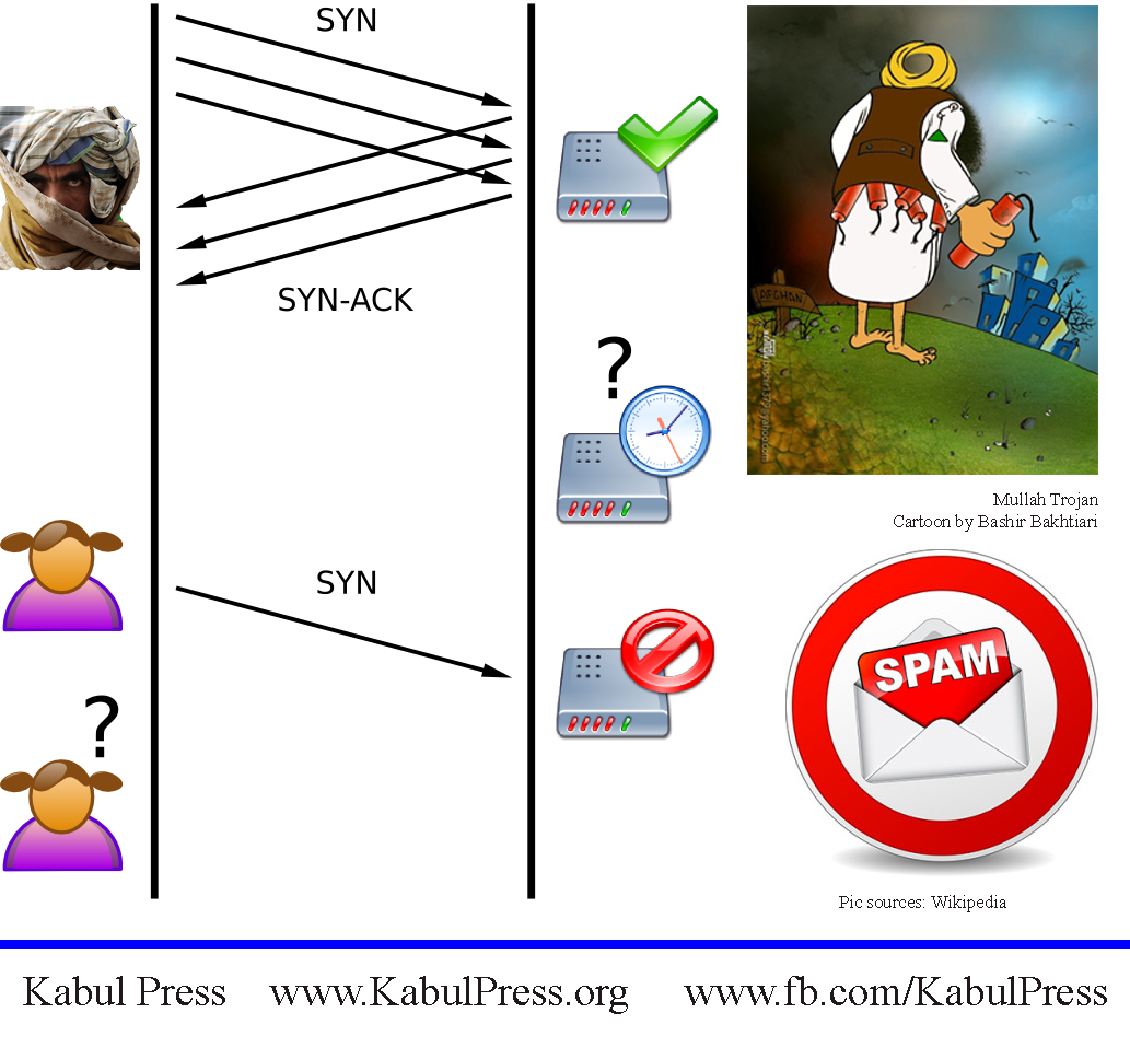 یک: حمله داس از نوع SYN flood به منظور خارج کردن سایت کابل پرس از دسترس بازدیدکنندگان اصلی