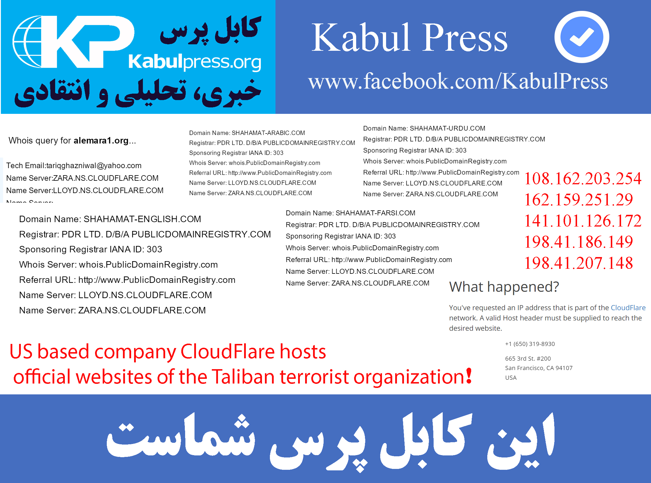 US Based Company CloudFlare Provides Network Services to the Taliban Terrorist Organization!