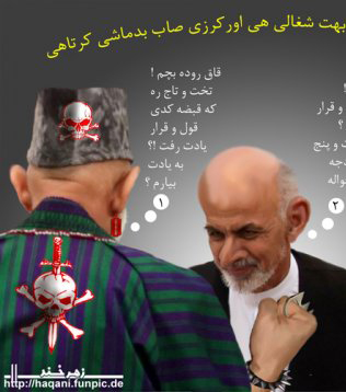 طبعا که کرزی هم همه چال و فریب و نیرنگ های شیطانیش را بکار برد تا تخت و تاج را از دست ندهد ولی بادارش به هیچ وجهی به این خواست او تن در نداد که بالاخره کرزی مجبور شد قبول کند حالا که قمار را باخته نباید حریف را از دست دهد و بجای آن در تعین جانشینش همه سعی و تلاش را بخرچ دهد که کسی را در تصاحب تخت و تاج یاری رساند تا فردا بتواند ازو به نفعش استفاده کند.