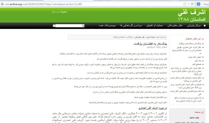حالا غنی احمدزی به عنوان رییس جمهور گماشته شده بود و خودش نیز به دلیل واقف بودن به تقلب سازمان یافته و ساخت و پاخت های استخباراتی، مدام یاد گرفته بود تاکید کند که رییس جمهور قانونی و منتخب مردم است. در حالی که بدون رای تورک ها، رای غنی احمدزی ممکن از انتخابات پیش 2009 نیز کمتر می شد.