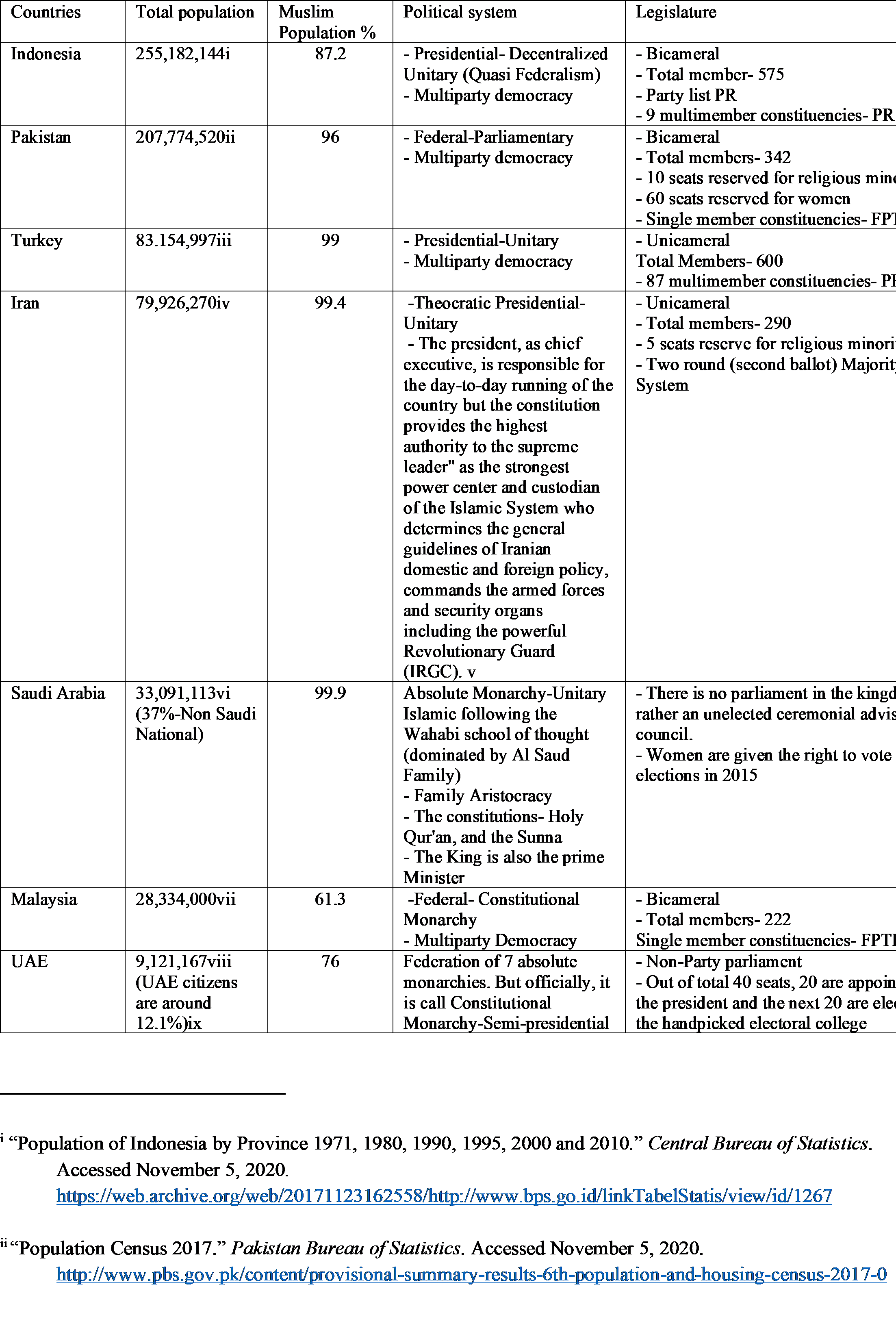 Expect for that of few, most of the Islamic countries have the modern constitutionalism. The “Shariah” plays a nominal role mixed with the European style Common Law as the base of their legal system. In most of these countries, the Shariah and modern concept of legal system are not intertwined through clear boundaries. But still their political systems are well-defined internationally. (See Appendix 2)