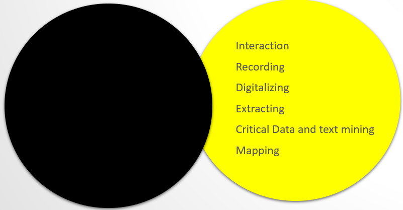The project "From American Black Movements to Yellow Uprising of the Hazara in Hazaristan" is almost new in its context. Taking the work-in-progress understanding of intersectionality (Carbado et al., 2013), besides critical approaches of text and data mining (Dobson, 2019a, 2019b) and the engagement and interaction of the Hazara in recording the events related to their human rights situation as well as folklore, can be considered as a transform to digital humanities. A movement that takes "private marginalia to public, scholarly, dynamic interaction" (Mandell, 2019).