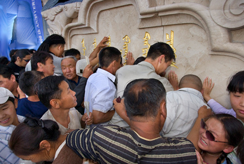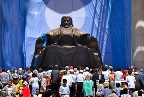 قسمت پایین مجسمه بالا، مغولها چنگیزخان را تا سرحد خدا تکریم و ستایش می کنند.