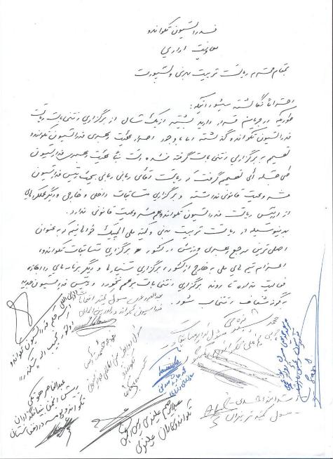 بر بنیاد اتفاق آرای هیئت رهبری فدراسیون تکواندو، دورة ریاست فدراسیون تکواندو مشروعیت قانونی ندارد و همه عملکردها، برگزاری مسابقات و جلسات، اعزام تیمهای ملی به رقابتهای بین المللی از آدرس ریاست فدراسیون تکواندو نیز مشروعیت قانونی ندارد و هیچ کس حق ندارد از آدرس ریاست فدراسیون تکواندو تا انتخاب رییس جدید فدراسیون استفاده ناجایز کند.