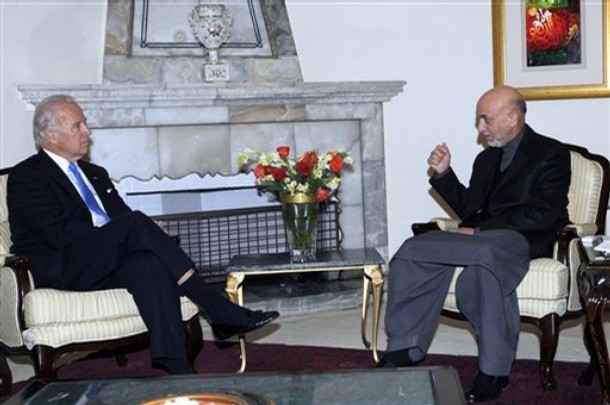 به نقل از یک منبع مؤثق از دفتر کرزی، جو بایدن معاون بارک اوباما در سفر خویش به افغانستان برای کرزی پیشنهاد نمود قبل از ختم دوره کاری خویش استعفا دهد